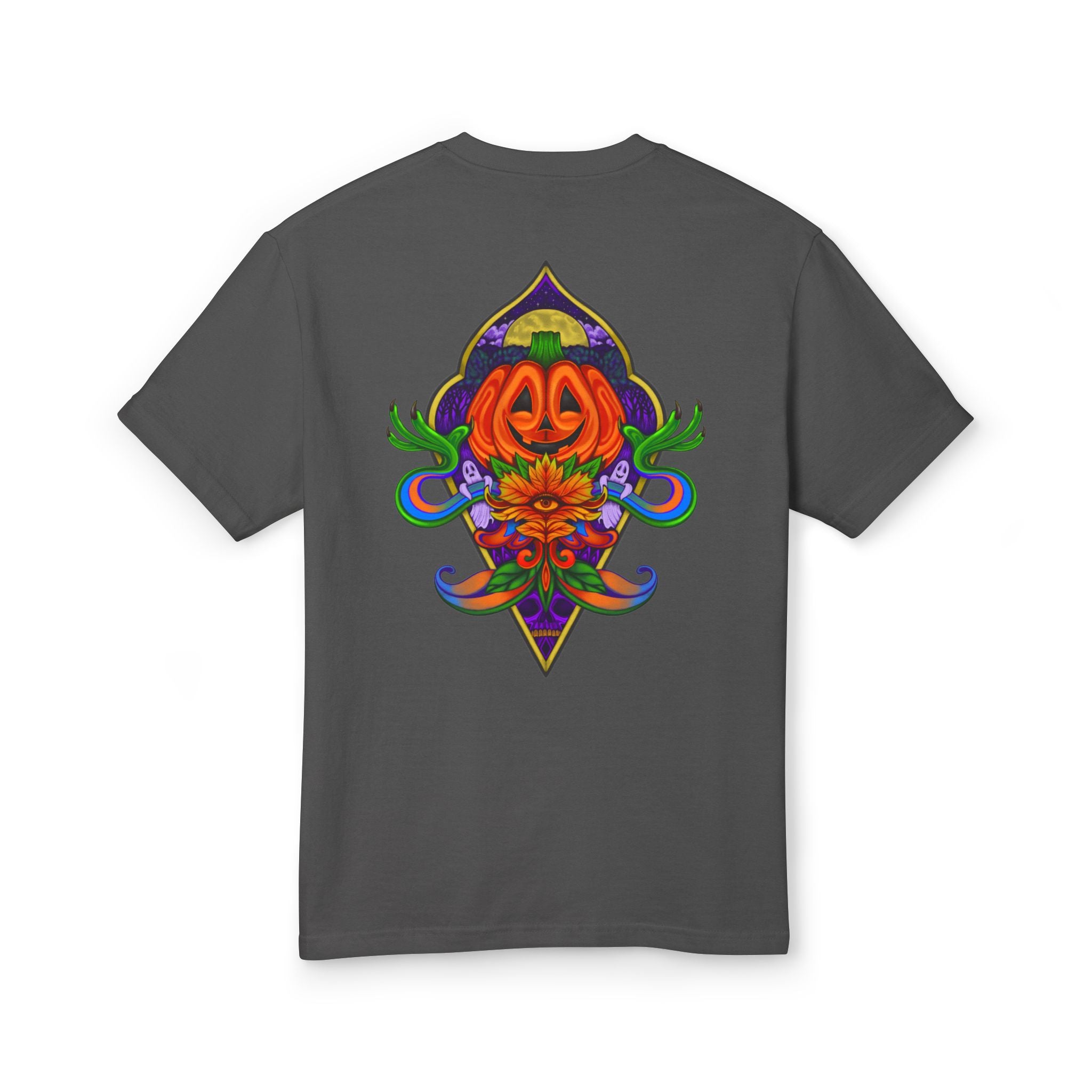 A little mystery on the front, and a world of wonder on the back - this shirt features an accent design and a full illustration that transports you through a spooky portal. Available for a limited time (Oct 15-19, 2025).